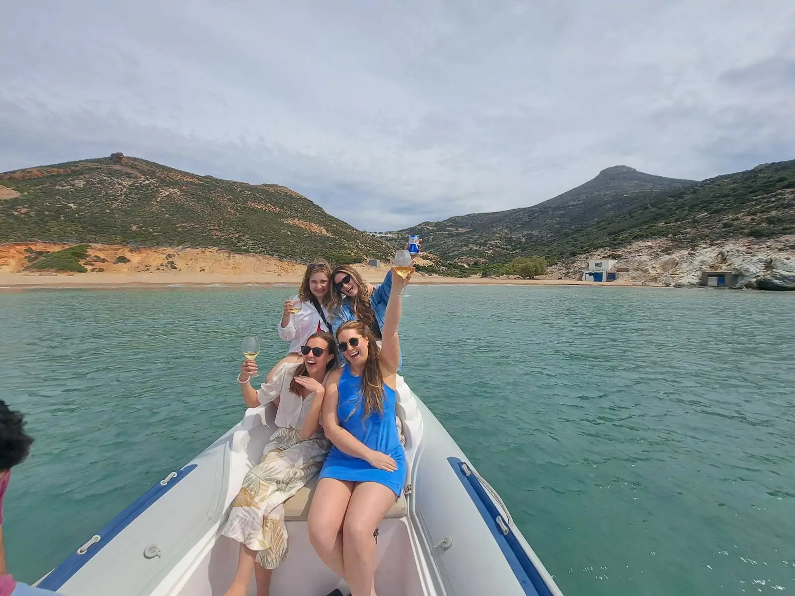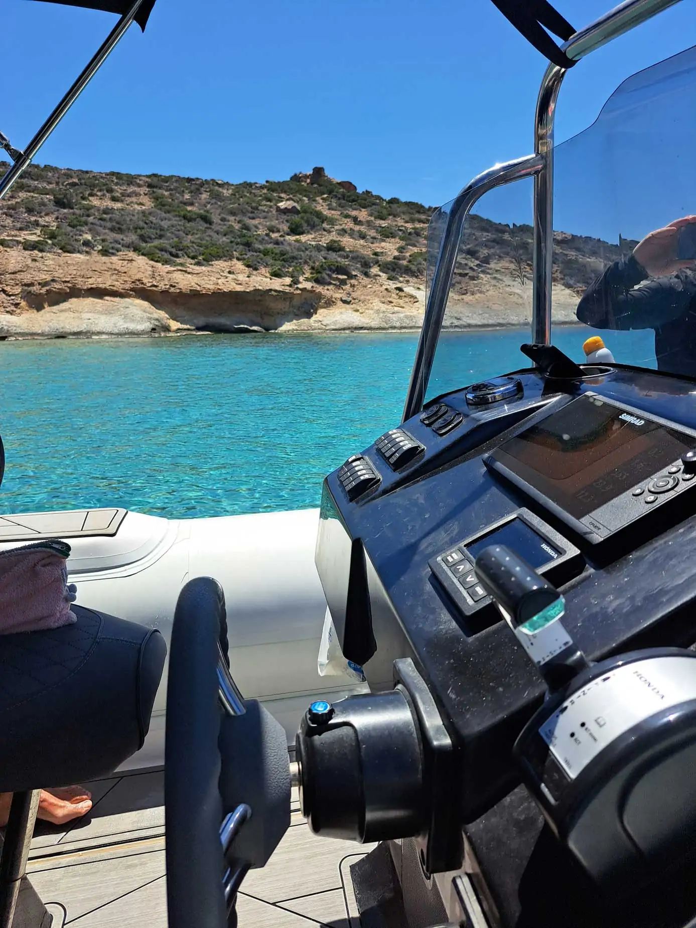 I was nervous about driving a boat, but the team gave me a quick training, and it was amazing! Definitely a must-do in Milos.